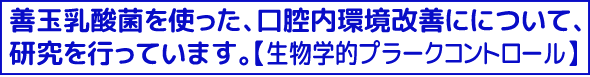 当院は、患者さんのご協力のもと、研究活動も行なっています。善玉菌「WB21乳酸菌」と口臭、歯周病菌に関しては、福岡歯科大学、九州大学、わかもと製薬(株)と、善玉菌「WB21乳酸菌」 と虫歯菌に関しては、北海道医療大学、わかもと製薬(株)と共同研究を行なっています。